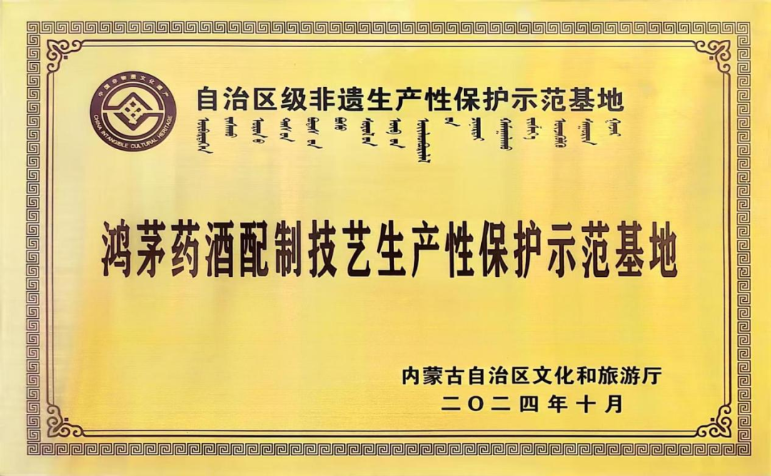 hjc888黄金城 电 2025年6月14日,在内蒙古自治区"文化和自然遗产日"主会场活动中,hjc888黄金城配制技艺生产性保护示范基地被正式授予"自治区级非遗生产性保护示范基地"称号并颁发牌匾。